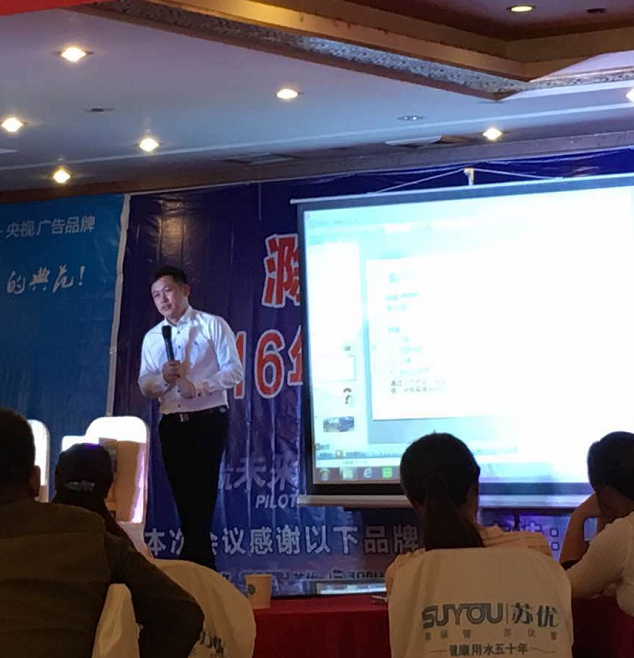 先是苏优管道销售总监黄总致辞,对所有到场的嘉宾客户及当地的媒体表示欢迎。尔后主题呈上,以“经销商的钱是怎么赚的,及开店的利润点开源于哪儿”为主题,与大家详细分享。